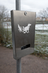Geschlossener Spender für Hundekotbeutel aus Edelstahl gebürstet.