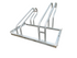 Zerlegbarer Fahrradparker. Grundrahmen aus Winkeleisen 35 x 35 mm, stirnseitig mit je einem Winkeleisen zur Anlagenerweiterung und Bodenbefestigung. Einseitige Ausführung. Platzsparend durch Hoch-/Tiefstellung der Haltebügel, Radabstand 350 mm. Untere Radeinstellung für Reifenbreite bis 55mm und die Obere Radeinstellung ist bis 60mm geeignet