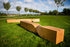 Der Sitz besteht aus einem einzigen Stück Massivholz, an dem von unten zwei verzinkte Beine mit Edelstahlschrauben befestigt sind. Der Block ist ordnungsgemäß verarbeitet, aufgrund der natürlichen Beschaffenheit des Holzes kommt es jedoch häufig zu Rissen oder Ästen und daher kann die Oberfläche der Bank rauer sein.